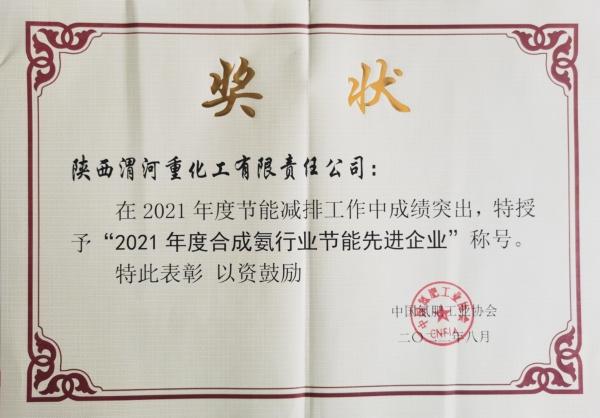 2022年8月公司榮獲2021年度合成氨行業(yè)節(jié)能先進(jìn)企業(yè)