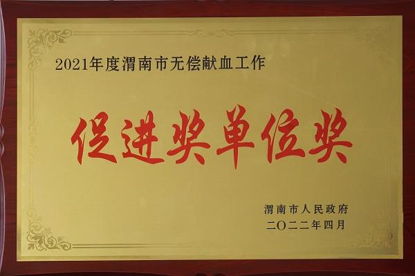 2022年4月公司榮獲2021年度渭南市無(wú)償獻(xiàn)血工作促進(jìn)獎(jiǎng)單位獎(jiǎng)