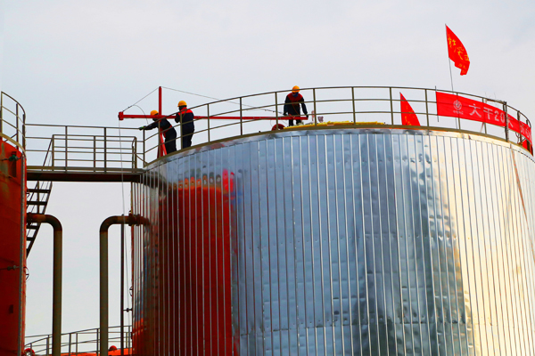 常態(tài)化控制疫情,項(xiàng)目建設(shè)全面復(fù)工。陽光照耀下,乙二醇項(xiàng)目室外建筑色彩亮麗,現(xiàn)代時(shí)尚,給人以激情和力量;燈光映照下,工廠操作間寬敞明亮,工人們調(diào)試神情專注,設(shè)備設(shè)施完好精良。