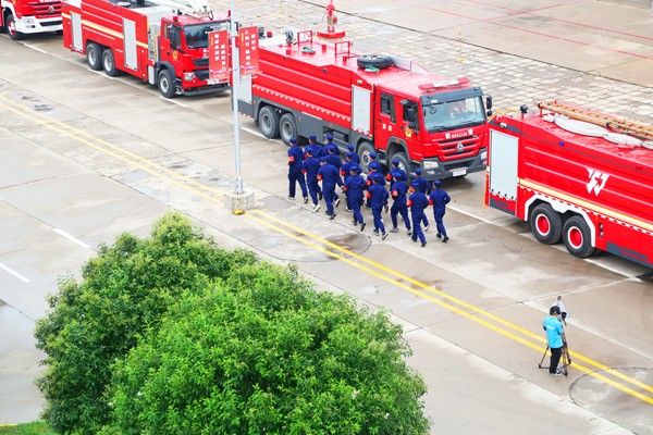 演練現(xiàn)場(chǎng)、編隊(duì)行進(jìn)、應(yīng)急救援、火力打擊……隊(duì)員們機(jī)動(dòng)迅速、現(xiàn)場(chǎng)作戰(zhàn),機(jī)動(dòng)靈活,空中俯瞰演練現(xiàn)場(chǎng),畫面震撼,猶如在觀看著大片。