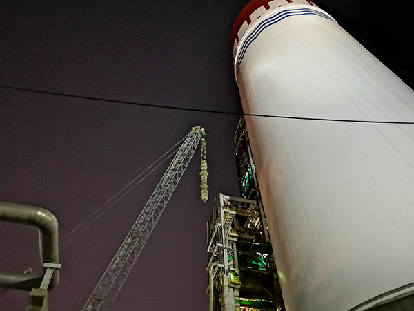 所有寒風(fēng)中的等待、嫌怨,都被他的話感動(dòng)了。因?yàn)轱L(fēng)太大,無(wú)人機(jī)最終沒(méi)派上用場(chǎng),光線太暗,相機(jī)拍攝效果也不好,幸好手機(jī)夜間模式還記錄下2#甲銨冷凝器別離的過(guò)程,留下依依的記憶……