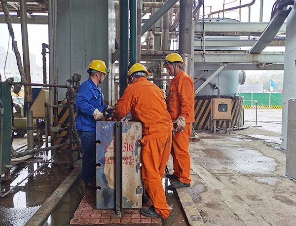 你看,衛(wèi)生小組人員對檢修現(xiàn)場遺留的垃圾進(jìn)行及時清理、框架十樓師傅們相互配合拆卸DA102填料……