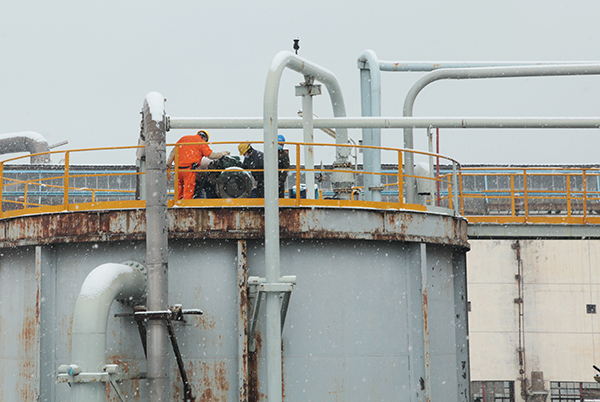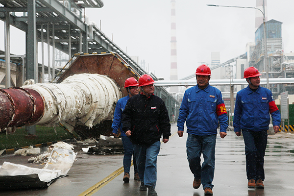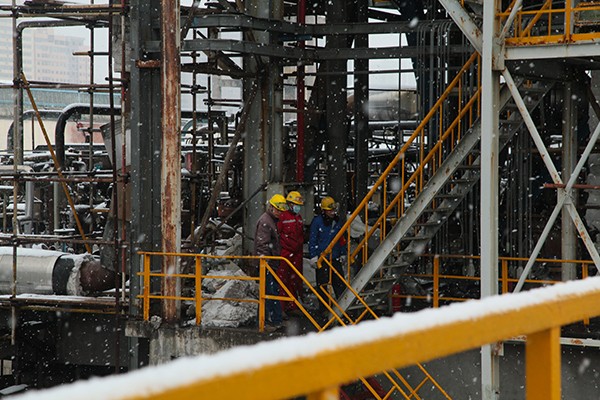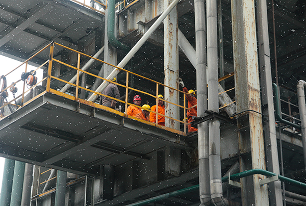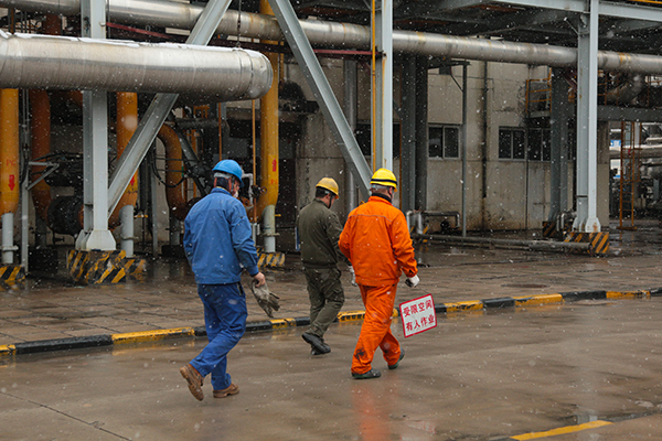 2020年的第一場大雪粉裝了世界,卻也給檢修帶來了不便,但是檢修人的腳步?jīng)]有停頓,他們在向著冬天發(fā)起一輪又一輪的沖鋒和激戰(zhàn),青黑的倒鏈混著雪水、切割機閃亮的火花映著白雪,雪中的檢修,呈現(xiàn)出更美的勞動圖畫。