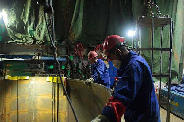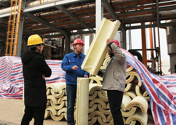 11月29日是星期日,大檢修現(xiàn)場依舊繁忙。合成C1、C2、C3塔正在穿上新衣,新的保溫材料一節(jié)節(jié)往上包裝,副總經(jīng)理趙強在現(xiàn)場檢查并問詢情況;氣化爐的換磚備爐工作在爐內(nèi)、爐外同時開展,撈渣機的鎖渣閥正在復位,電氣人員機泵接線認真仔細;合成現(xiàn)場的操作人員在配合調(diào)整管線的氮氣壓力;尿素框架下,甲氨泵的檢修正在進行,框架上的閥門更換大家齊心協(xié)力;新尿素汽提塔安裝現(xiàn)場,交叉作業(yè)緊張有序,監(jiān)護人員時刻緊盯著塔內(nèi)的施工安全;機組檢修正在掀起回裝的高潮……