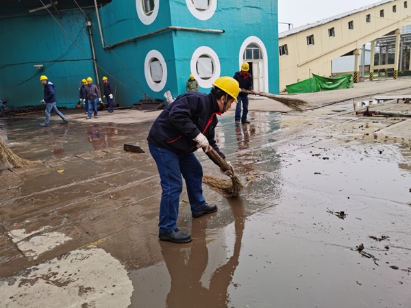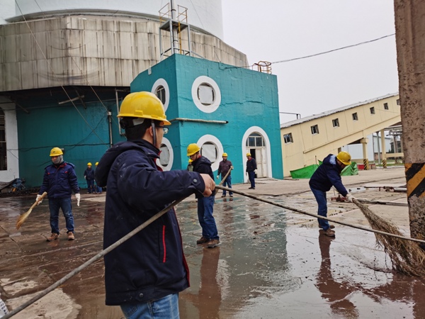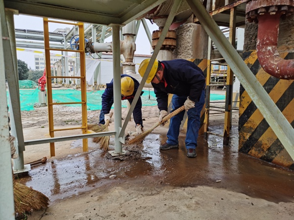 下午2點,車間技術(shù)員馮磊帶領全體尿素成員將檢修D(zhuǎn)A202后遺留在現(xiàn)場的水漬、保溫垃圾及設備內(nèi)部傾倒出來的臟東西進行清理,他們穿戴整齊、手拿著掃帚簸箕揮汗戰(zhàn)斗,不放過任何死角,沒有一個人嫌臟嫌累。經(jīng)過大家的辛勤努力,裝置區(qū)恢復干凈明朗,煥然一新,裝置區(qū)環(huán)境衛(wèi)生得到有效改善。