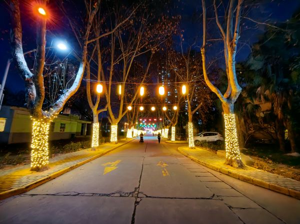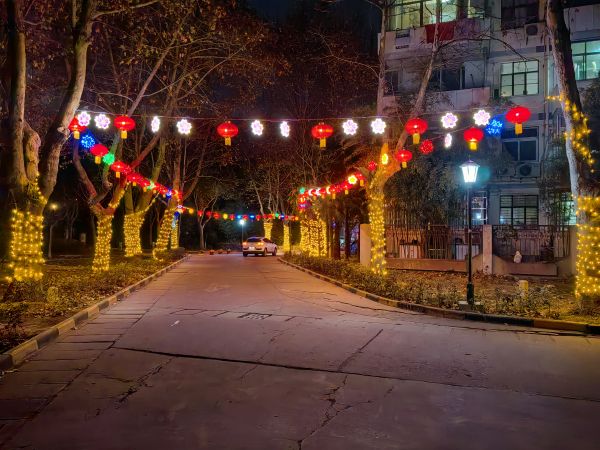 2023癸卯兔年春節(jié)即將來臨,花園小區(qū)在各色燈籠的點綴下熠熠生輝。