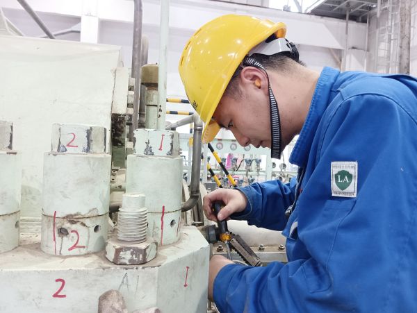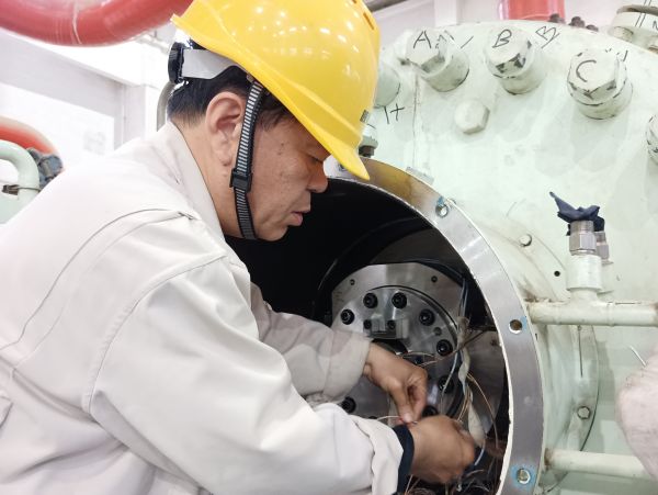 在狹窄的機組裝置間隙,他們半蹲著身體,胳膊伸進(jìn)縫隙,精神高度集中,全神貫注的輕推輕拉拆檢軸系儀表。剝線鉗、螺絲刀、扳手、榔頭在他們的手里靈活運用,動作行云如水,揮灑自如。幾十支精細(xì)的軸系儀表在他們手里僅僅六小時就拆卸完成,這就是機組檢修人超人般的耐力、反應(yīng)力和敏捷的速度。