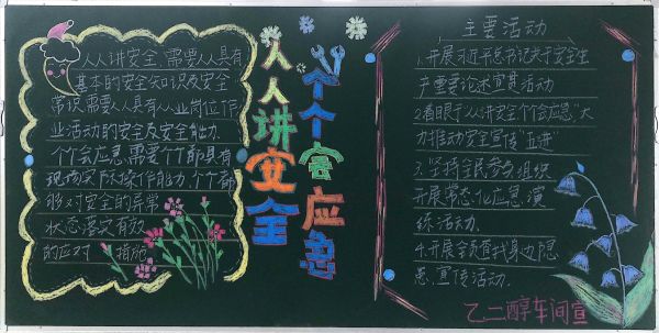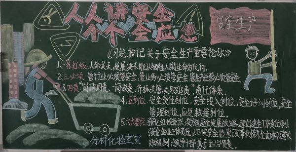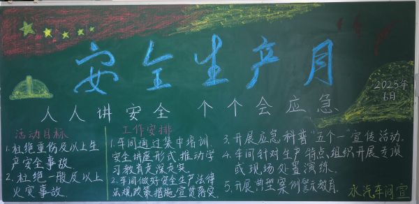 每年6月份是我國的安全生產(chǎn)宣傳教育月,也被稱為“安全生產(chǎn)月”。自開展“人人講安全、個個會應(yīng)急”為主題的“安全生產(chǎn)月”活動啟動以來,彬州公司各部門百花齊放,精心設(shè)計黑板報的版面和內(nèi)容,圖文并茂,內(nèi)容豐富多彩,大力營造良好安全工作氛圍。
