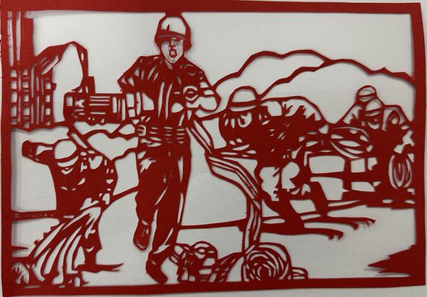史艷榮剪紙作品——《用剪紙剪出“消防超人”》