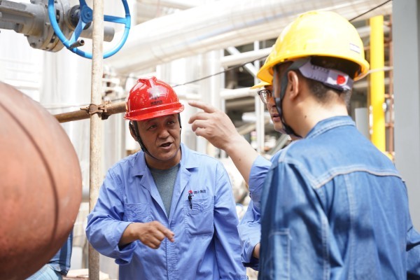 管廊間穿梭,高塔上攀爬,設(shè)備旁專(zhuān)注研討——這是渭化檢修人的日常戰(zhàn)場(chǎng)。烈日炙烤著鋼鐵叢林,汗水浸透工裝,但安全帽下的目光始終專(zhuān)注,手上的操作精準(zhǔn)嚴(yán)謹(jǐn)。疲憊襲來(lái)時(shí),一杯及時(shí)送達(dá)的清涼綠豆湯,不僅消解了暑熱,更如一股暖流,注入了繼續(xù)奮戰(zhàn)的力量。每一次細(xì)致的檢查,每一次認(rèn)真的維修,都在默默守護(hù)著裝置的平穩(wěn)運(yùn)行。致敬,高溫下的堅(jiān)守者!